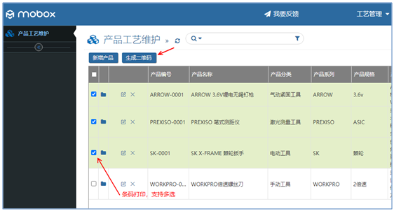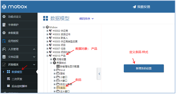Mobox數據平臺可以通過數據建模來管理各種物料,因此系統提供了一個物料條碼自定義格式打印的功能點。一下是一個例子(給一個產品打條碼)