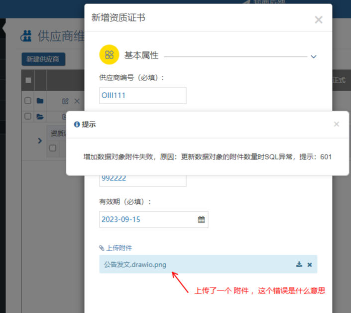 文件上傳:更新數據對象的附件數量時SQL異常,提示:601 2023/09/06 分類:產品中心 問題中心 742 問題描述:(20230906 發現) 若OIDateWebs 升級到 20230614 之后版本 ,而mobox數據對象是之前創建的,并且帶附件。存在OIDateWebs 升級后造成附件上傳異常問題 解決方法: 步驟1)下載OIDataWebS_R_20230905.zip 步驟2)更新OIDataWebS服務 步驟3)將數據對象里面的附件選擇先去掉 ,之后 ,重新添加附件選項 確定后,重新進入 ,將 附件 選項 重新 打上 標簽:問題 上一篇: 低代碼腳本開發-人員選擇 下一篇: 數據庫還原成功后(狀態為:關閉,正常),服務無法鏈接