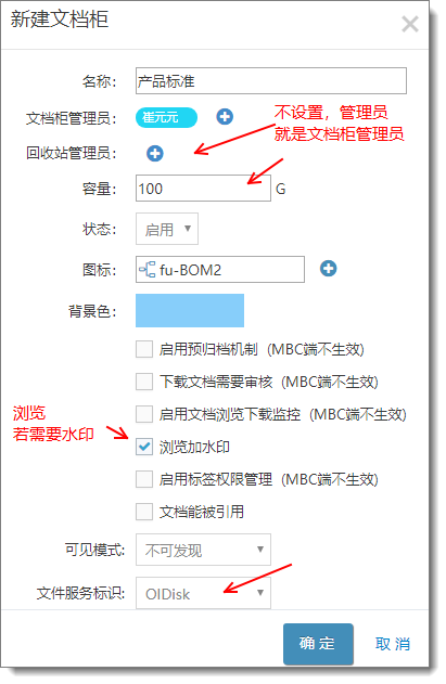 新增文檔柜 點擊后,需要注意的參數(shù)設置