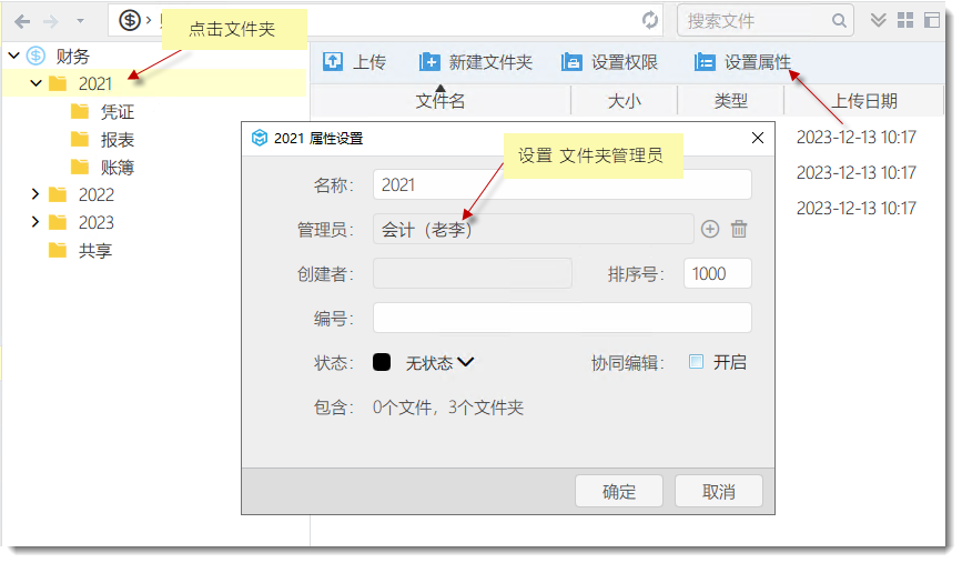 2)創(chuàng)建(文件夾),并設置可設置文件夾管理員