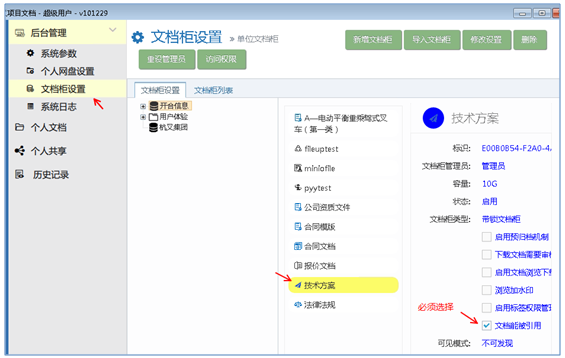 文檔柜創(chuàng)建后,【文檔能被引用】選項必須打勾