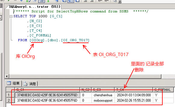 通過 SQL的管理器,打開 數據庫OIOrg 的 OI_ORG_T017表