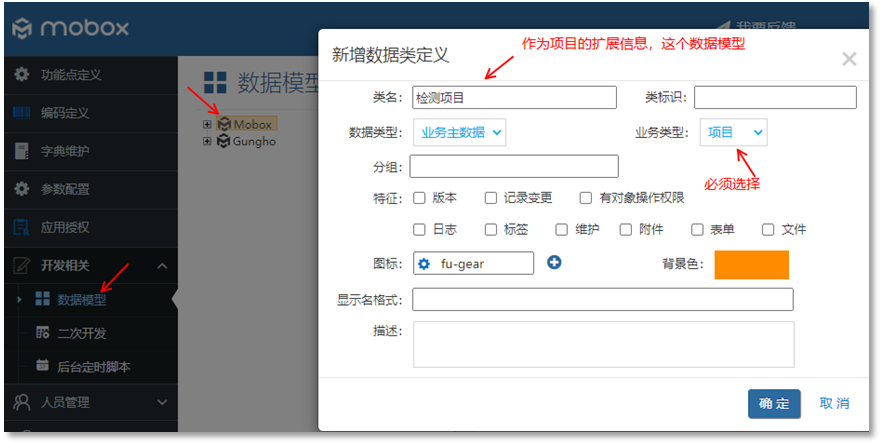 企業(yè)在實施項目管理系統(tǒng)的時候,不通類型的項目其屬性可能是不一樣的。而Gungho標(biāo)準(zhǔn)系統(tǒng)內(nèi)對項目的屬性,主要包括(項目名稱、編號、開始結(jié)束日期等)。為了適應(yīng)企業(yè)個性項目信息的輸入,我們需要通過Mobox平臺定義項目類型去適應(yīng)這個需求