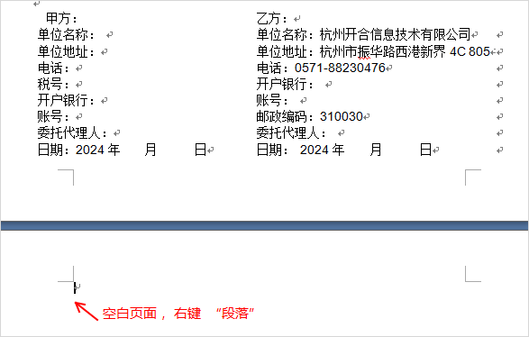 我們在做合同的時(shí)候,最后輸入的是甲方,乙方。而甲方乙方的信息很有可能是用表格來輸入的。Word插入表格后默認(rèn)在表格下方會增加一行。而這一回若放不下會進(jìn)入下一頁,形成空白頁面。 我通過了很多方法都無法刪除這個(gè)一行(就是無法刪除空白頁面)
