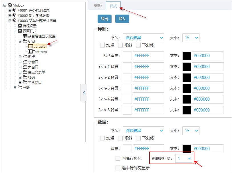 Mobox 3000功能點表格直接編輯的實現 2024/04/27 分類:產品中心 產品手冊 實施方案 661 3000 功能,可以點擊某一條記錄后,對這條記錄進行修改。但有的時候用戶這個數據是一個大表,希望能在全屏的模式下進行表格編輯,這樣會比較快 為此,系統可以實現表格直接輸入的功能。 實現方式如下 1)3000 功能點,綁定某數據類的grid 2)這個grid樣式中,需要定義,那些字段可以編輯 3)增加頁面按鈕,功能綁定 GridEdit 4)在輸入環節,點擊 頁面按鈕(輸入)就能進行表格直接輸入 5)格子編輯時的高度,可以在樣式里面定義 標簽:手冊 上一篇: Mobox 3000功能點頁面按鈕隱藏的lua實現方法 下一篇: 怎樣將ASP.NET Core Web API 部署到IIS