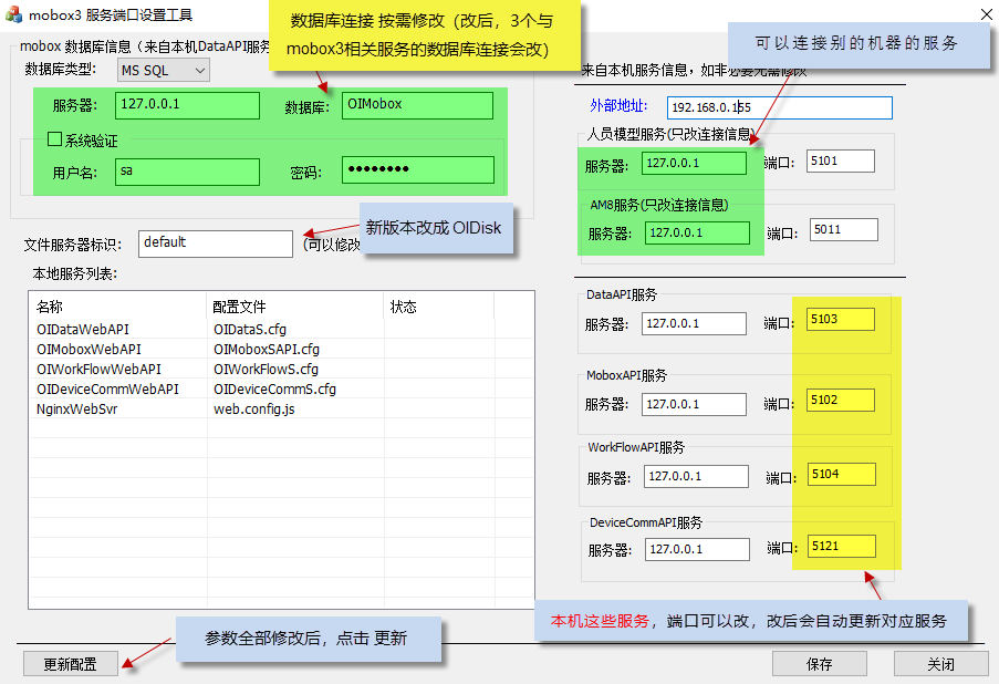 修改Mobox3系統(tǒng)數(shù)據(jù)庫連接及相關(guān)服務(wù)端口的作用