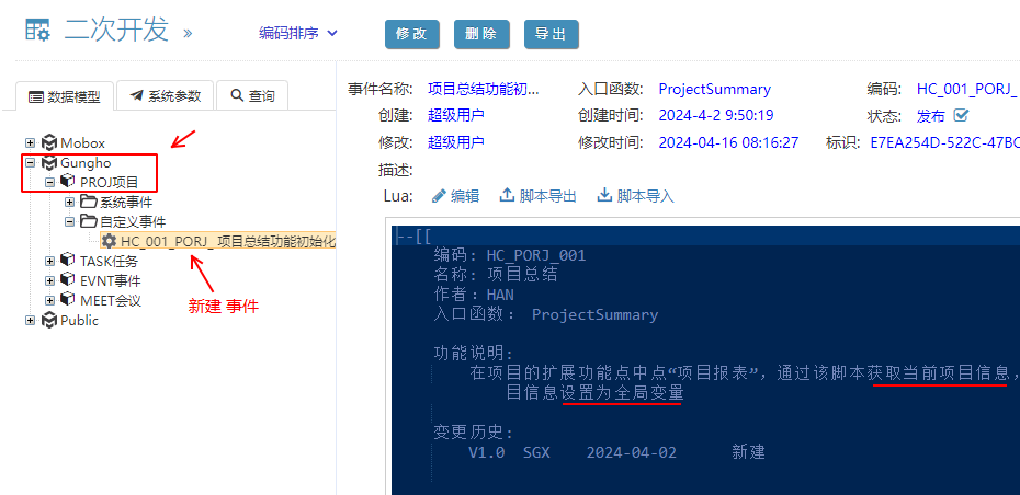 事件名稱:項目總結功能初始化